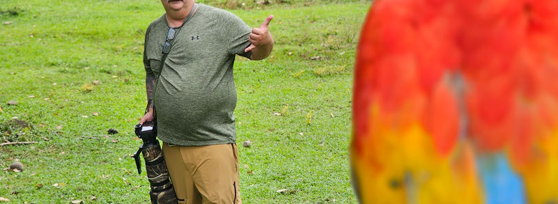 After breakfast at our hotel/botanical garden outside the capital city, we checked out from the Hotel Bougainvillea and boarded our spacious air-conditioned bus and head toward our first destination, the lowland rainforest. We spent the next few days eating delicious food, including our own Foto Verde Tours hot sauce which Paulo and I had fun preparing and the group really enjoyed. Oh yeah, in addition to our culinary adventures, we also photographed toucans, hummingbird, bats, and frogs😉We also had a special treat on our very last morning at our rainforest lodge - an Ornate Hawk Eagle perched in a Cecropia tree right by the parking lot!